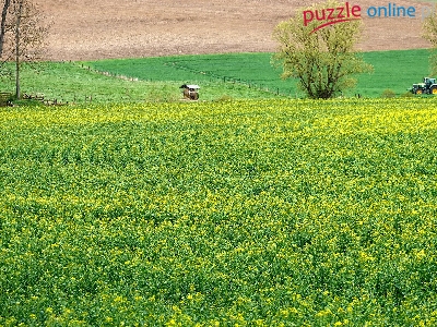 Puzzle Rzepak, Wiosna, Pole, Drzewa