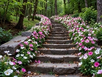 Drzewa, Kwiaty, Schody