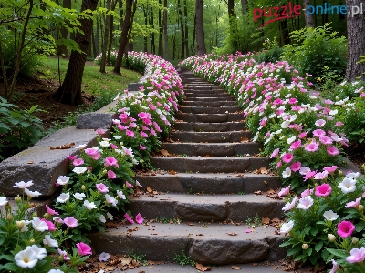 Puzzle Drzewa, Kwiaty, Schody
