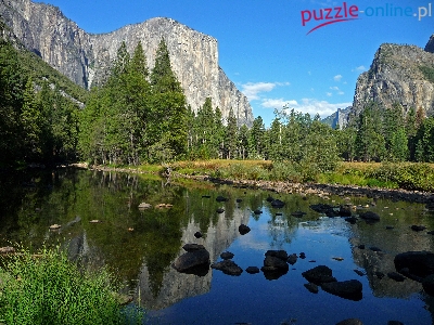 Drzewa, Góry, Kalifornia, Rzeka, Skaliste, Yosemite
