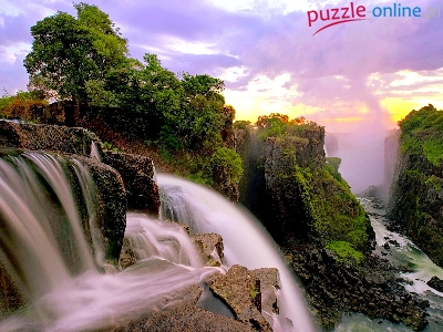 Drzewa, Zambia, Wodospad, Skały, Victoria
