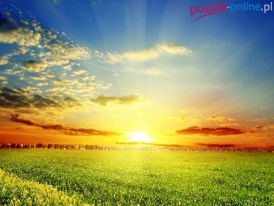 Puzzle Drzewa, Promienie, Słońca, Łąka