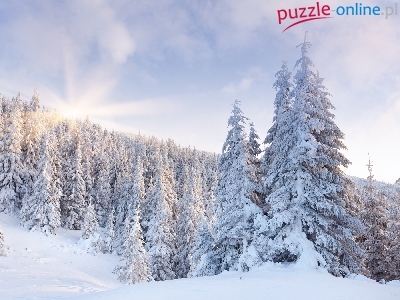 Puzzle Drzewa, Promienie Słońca, Śnieg