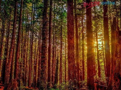 Park Narodowy Redwood, Promienie słońca, Stany Zjednoczone, Stan Kalifornia, Drzewa