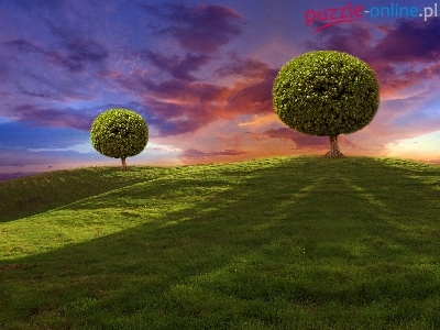 Puzzle Drzewa, Zachód, Słońca, Łąka