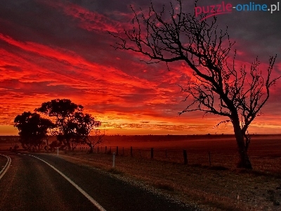 Puzzle Drzewa, Zachód, Słońca, Droga