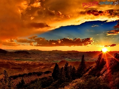 Puzzle Drzewa, Zachód, Słońca, Góry