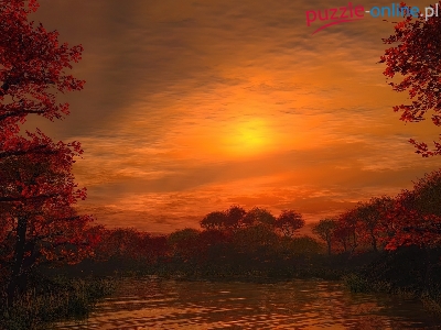 Puzzle Drzewa, Zachód Słońca, Jesień