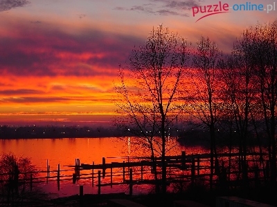 Puzzle Drzewa, Zachód Słońca, Jezioro
