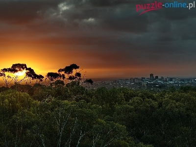 Puzzle Drzewa, Zachód, Słońca, Miasto
