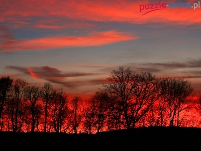 Puzzle Drzewa, Zachód, Słońca, Niebo
