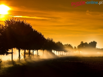 Puzzle Drzewa, Zachód, Słońca, Promienie