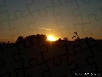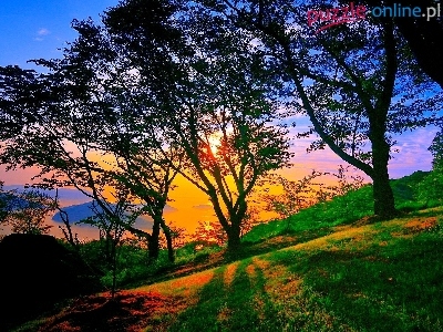 Puzzle Drzewa, Zachód, Słońca, Trawa