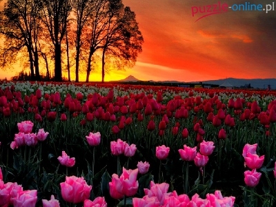 Drzewa, Tulipanów, Zachód, Słońca, Połacie