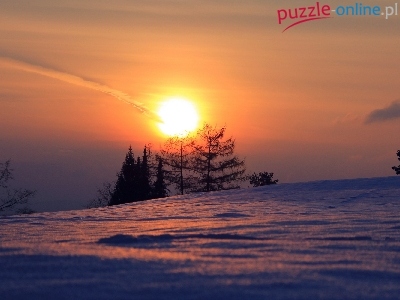Puzzle Drzewa, Zachód, Słońca, Zima