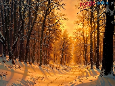 Światło, Zima, Las, Drzewa, Droga, Słoneczne