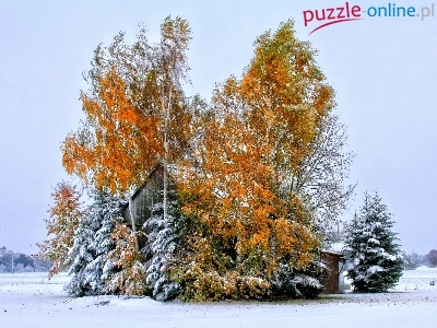 Puzzle Drzewa, Pola, Stodoła, Zima