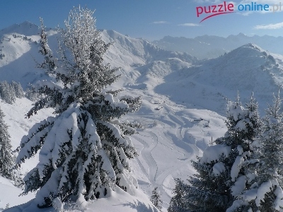 Puzzle Drzewa, Góry, Szczyty, Zima
