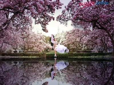 Puzzle Drzewa, Kobieta, Taniec, Jezioro