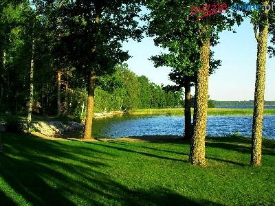 Puzzle Drzewa, Jezioro, Trawa, Niebo