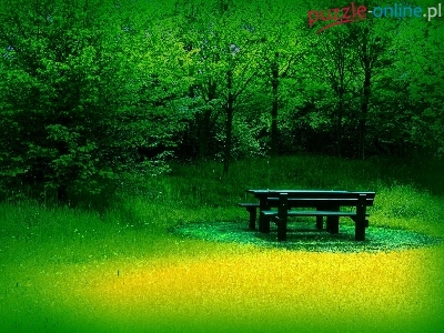 Puzzle Drzewa, Lato, Trawa, Ławka
