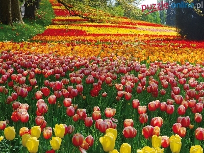 Puzzle Drzewa, Kolorowe, Tulipany, Alejka
