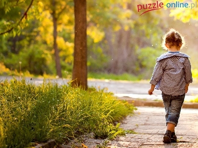 Puzzle Drzewa, Dziewczynka, Ulica, Trawa