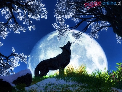 Puzzle Drzewa, Wyjący, Wilk, Noc