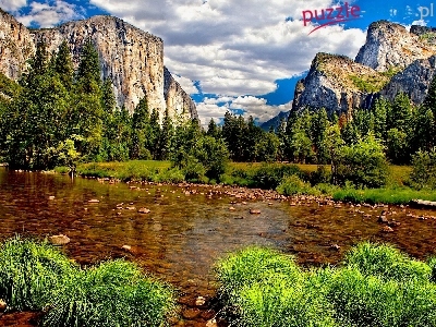 Puzzle Drzewa, Góry, Woda, Trawy