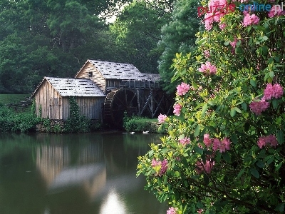 Drzewa, Krzew, Młyn, Woda, Kwitnący