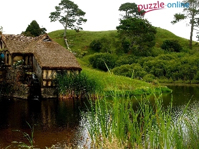 Puzzle Drzewa, Młyn, Woda, Rośliny