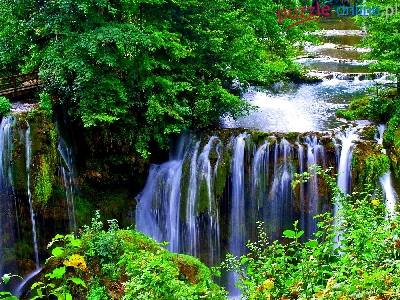 Puzzle Drzewa, Piękny, Wodospad, Mostek
