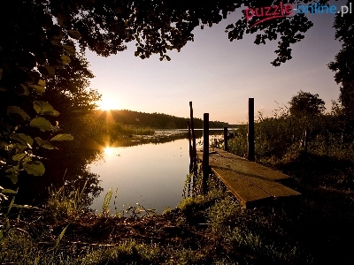 Puzzle Drzewa, Jezioro, Pomost, Wschód Słońca