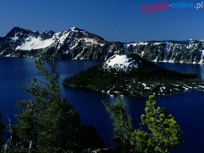 Puzzle Drzewa, Jezioro, Wysepka, Zima