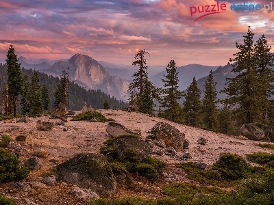 Puzzle Drzewa, Góry, Wzgórze, Kamienie