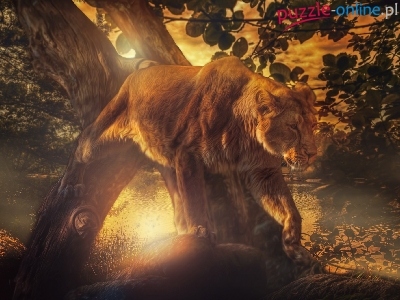 Puzzle Drzewa, Lew, Zachód słońca