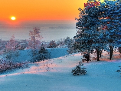 Drzewa, Mgła, Bizony, Rzeka, Śnieg Drzewa, Góry, Pomarańczowe, Rzeka Domki, Zima, Góry, Światła Drzew, Szpaler, Liście Zachód, Jezioro, Góry, Słońca Kwitnąca, Wiśnia Słońca, Zachód, Kanion