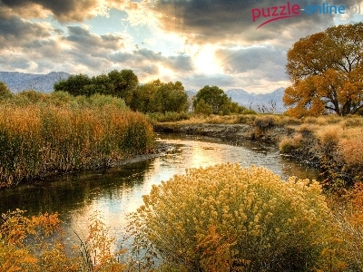 Puzzle Drzewa, Rzeka, Zarośla, Chmury
