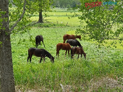 Puzzle Zielone, Konie, Pastwisko, Drzewa