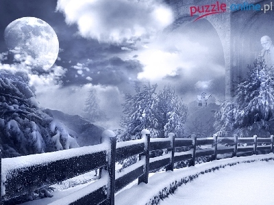 Puzzle Drzewa, Księżyc, Zima, Noc