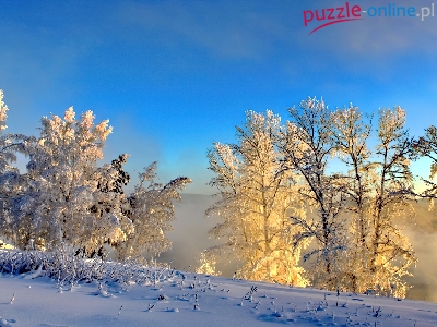 Puzzle Zima, Drzewa, Niebo