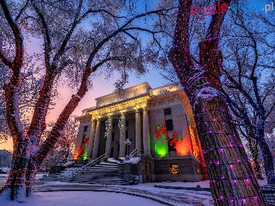 Courthouse, Stany Zjednoczone, Dom, Zima, Prescott, Arizona, Drzewa