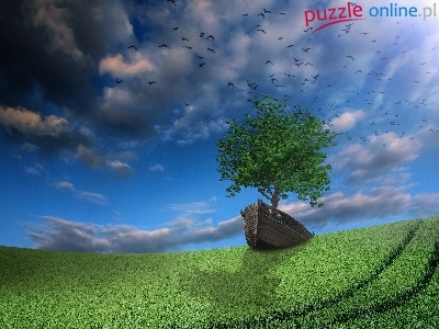 Puzzle Łąka, Drzewo, Ptaki