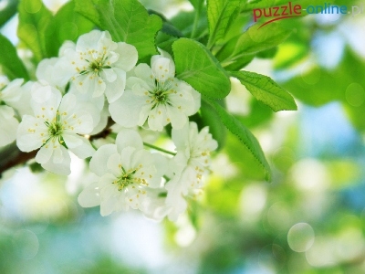 Puzzle Białe, Drzewo, Kwiaty