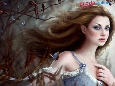 Puzzle Drzewo, Kobieta, Elf, Motyle