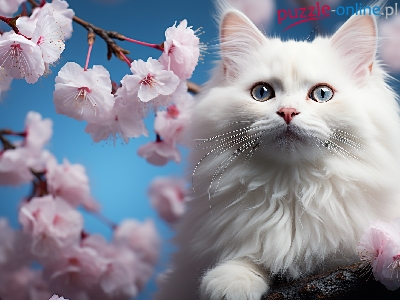Kwiaty, Biały, Kot, Drzewo, Grafika, Gałęzie