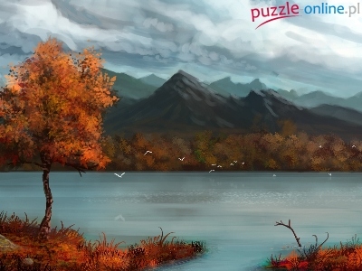 Puzzle Drzewo, Jezioro, Góry, Jesień