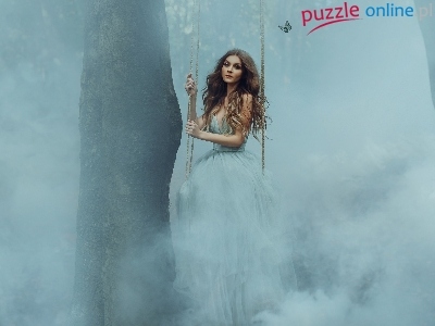 Drzewo, Szatynka, Motyl, Kobieta, Huśtawka, Mgła