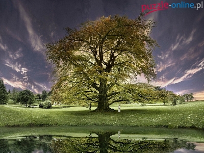 Puzzle Drzewo, Łąka, Jeziorko, Niebo
