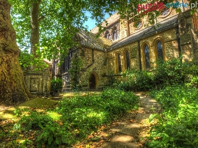 Drzewo, Roślinność, Londyn, Kościół, Ścieżka